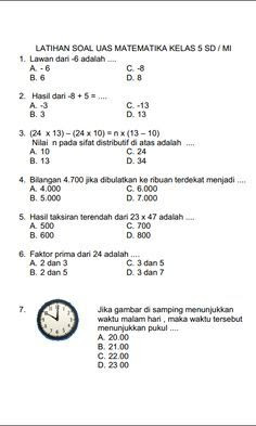 Daftar Isi hide 1 Contoh Soal Matematika Kelas 5 SDMI Lengkap Dengan Kunci Jawabannya. Contoh Soal PKN kelas 5 SD Mi semester 1 dan semester 2 beserta kunci jawaban nya lengkap dan terbaru kurikulum 2013 soal pilihan ganda dan esay. Pada soal dan kunci jawaban pjok kelas 5 sd kami hanya membagikan 30 soal pilihan dan 10 soal isian singkat.